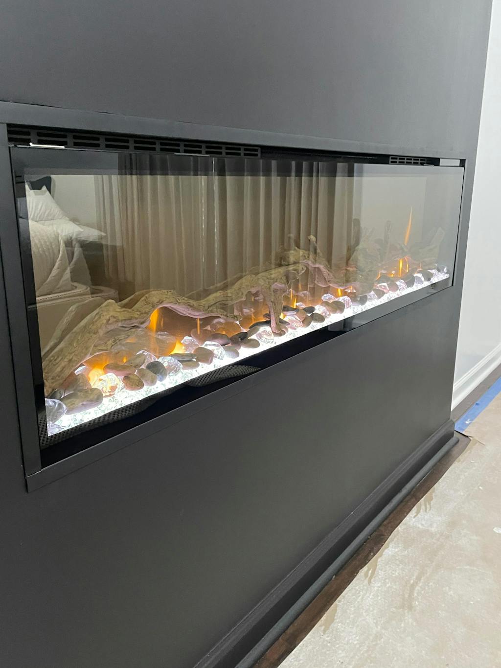 Our original fireplace was just that. A gas log fireplace. It turned on. We saw gas flames. It turned off. It had a mesh screen.