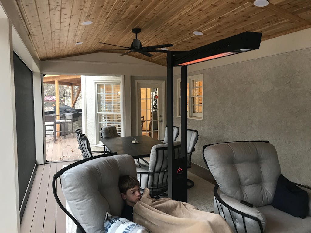 Bought to put in our screened in porch under cover at all times. Very nice quality and fit/finish. Great directions and all parts were there. Problem is there just isn’t enough heat, really not even close. We are in the southeast, temps not real cold (upper 40’s) and with just two of us sitting directly under it we have blankets, no wind. Maybe it would be fine if you want to use it with warmer temps but we are heading to Lowe’s to get a propane heater to get the job done.