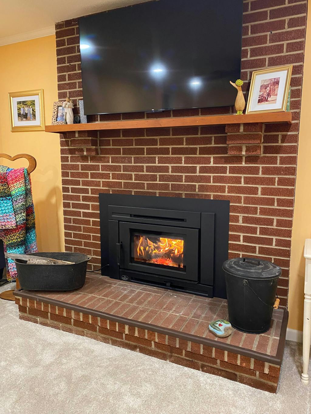 After solving the vibration sound, we are very happy with our purchase! The glass door is our favorite part. I often sit downstairs with a book, reading while the flames dance. The Matrix transformed our chilly downstairs into a cozy place that we actually enjoy spending time in. It’s an eye catching little wood insert!