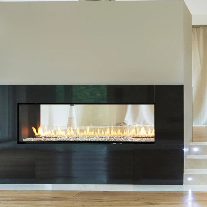 The Montigo R420ST 48" Exemplar See Through Gas Fireplace brings striking dual-sided flames to open-concept designs. Ideal for dividing large rooms or uniting adjacent spaces, this luxury fireplace features a wide frameless view on both sides, a contemporary linear burner, and Montigo’s signature craftsmanship. It’s a perfect blend of architectural elegance and high-performance heating for residential and commercial environments alike.