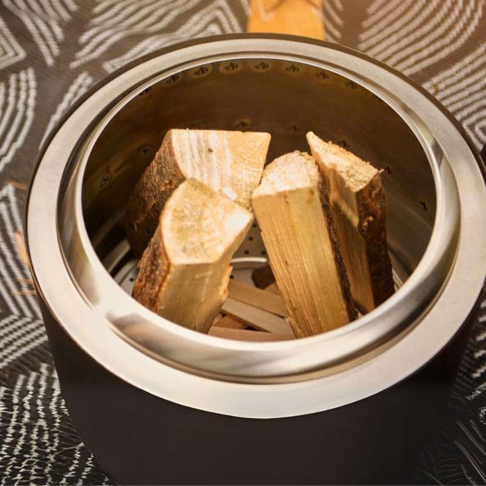 • MULTI-FUEL: Select the fuel type that works best for you. The Timberwolf® Smoke-Less fire pit burns wood, pellets, or charcoal for cooking